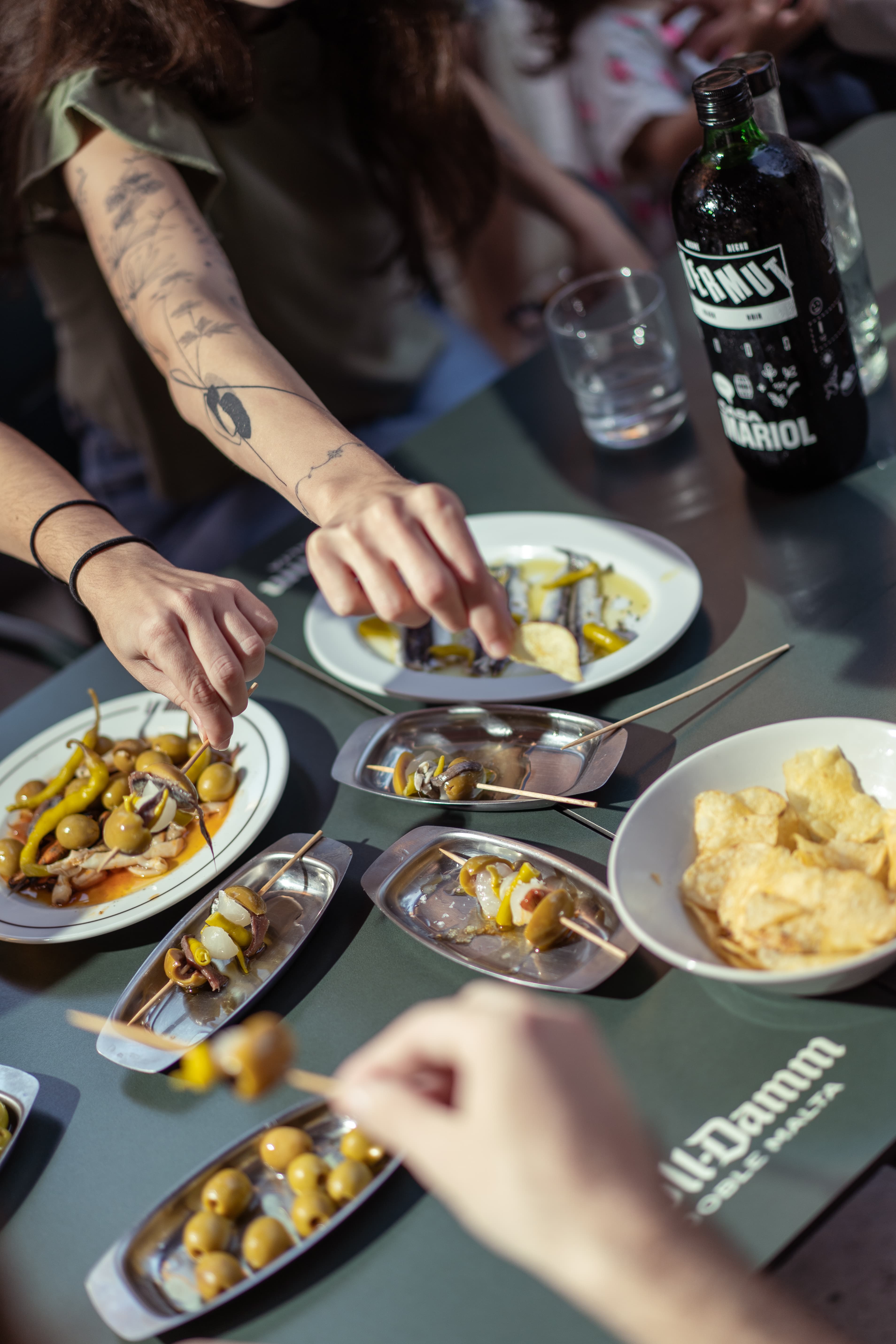 Amb olives, navalles, escopinyes, musclos en escabetx i anxova.
